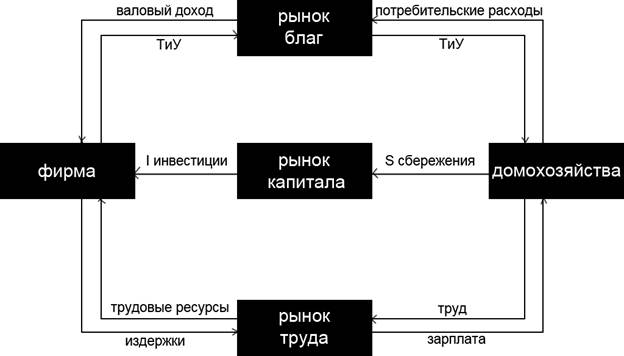 Рис. 1.3 Данная система будет устойчива при выполнении следующих условий: · Y = C + S (домохозяйства) · Y = C + I (фирмы) S = I Если это отношение нарушается, то возможен дефицит ресурсов или избыток ресурсов на рынке. Инвестиции – это любые вложения в любой форме с целью получения положительного социально-экономического результата. Инвестиции необходимы для создания и увеличения капитала. Наиболее распространённой формой инвестиции является вложение денежных средств. Инвестирование – процесс создания или пополнения запаса капитала. Различают: · Валовые инвестиции – это общее увеличение запаса капитала. В них учитывается возмещение – процесс замены изношенного основного капитала. Износ – потеря капиталом частью своей стоимости в процессе эксплуатации. Виды износов: 1. Физический 2. Моральный – потеря капиталом своей стоимости в результате появления новых технологий Для восстановления стоимости капитала осуществляют амортизацию – это перенос части стоимости капитала на выпускаемую продукцию. · Чистые инвестиции – валовые инвестиции за вычетом средств, идущих на возмещение. Источники инвестиций: 1. Собственные средства (амортизация, чистая прибыль) 2. Заёмные средства (кредиты, ссуды, займы) 3. Привлечённые средства (бюджетное финансирование – средства головных организаций)