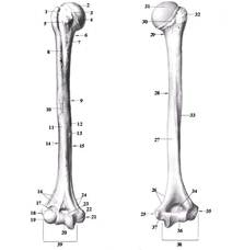 ТЕМА: Кістки плеча, передпліччя та кисті. Особливості скостеніння трубчастих кісток, скостеніння плечової кістки, кісток передпліччя та кисті, аномалії. Актуальність теми: Знання будови кісток верхньої кінцівки (плеча, передпліччя, кисті) дає можливість дослідити функціонування вільної верхньої кінцівки і об’єм рухів у плечовому, ліктьовому, променево-зап’ястковому суглобах та суглобах кисті. Навчальні цілі заняття: ЗНАТИ: а) класифікацію кісток верхньої кінцівки; б) анатомічну будову плечової кістки; в) анатомічну будову променевої і ліктьової кістки; г) поділ кісток кисті; д) анатомічну будова кісток зап’ястка; е) анатомічну будова кісток п’ястка; є) анатомічну будова флангів пальців; ж) відмінності кісток правої і лівої кінцівок; з) скостеніння кісток вільної верхньої кінцівки, аномалії.