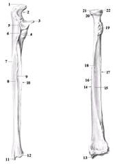 10. Які кістки формують передпліччя? A. radius, ulna B. humerus, radius C. ulna, humerus D. fibula, ulna E. talus, ulna
