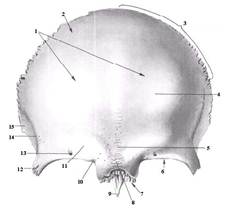 6. Яка кістка має margo sagitalis? A. os parietale B. os occipitale C. os frontale D. os occipitale, os frontale E. всі перераховані