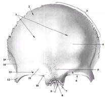 ТЕМА: Загальні дані про череп. Потилична, тім'яна і лобова кістки. Актуальність теми: Знання будови черепа людини, його форми та розмірів у нормі, знання будови окремих кісток черепа має значення для лікарів-отоларингологів, невропатологів, окулістів, сурдологів, стоматологів і інших спеціальностей при діагностиці та лікуванні багатьох захворювань. Навчальні цілі заняття: ЗНАТИ: а) кістки мозкового черепа; б) кістки лицевого черепа; в) поділ черепа на основу і склепіння; г) межу між основою і склепінням; д) розташування в черепі потиличної кістки, її взаємовідношення з іншими кістками, частини і анатомічну будову; е) розташування в черепі тім’яної кістки, її взаємовідношення з іншими кістками, частини і анатомічну будову; є) розташування в черепі лобової кістки, її взаємовідношення з іншими кістками, частини і анатомічну будову; ж) точки скостеніння потиличної, тім’яної і лобової кісток; з) аномалії процесів скостеніння потиличної, тім’яної і лобової кісток.