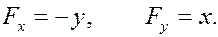 Пример непотенциального двумерного силового поля (соленоидальное поле)
