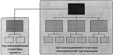 Лекция 10. Организационные формы управления проектами. Организация проекта. Проекту требуются организационные рамки, чтобы обеспечить целенаправленное взаимодействие всех участвующих в нем лиц. Этот вопрос имеет несколько аспектов. Во-первых, заказчику необходимо определиться с тем, будет ли проект выполняться преимущественно силами самой организации или его поручат сторонней организации. Соответственно реализуются схемы внутреннего или внешнего управления проектами. Во-вторых, поскольку проект, с одной стороны, является по существу некой относительно самостоятельной «организацией», а с другой – частью материнской организации, необходимо определить формы их взаимодействия, т.е. определить линии власти, полномочий и коммуникации. Проект и проектная группа должны быть интегрированы в процессы и организационную структуру предприятия, что может осуществляться следующими основными способами: · через создание чисто проектной организации, · через менеджмент влияния, · через создание линейной проектной организации, · при помощи посредников, · через проектную команду, · через матричную проектную организацию, · через гибридную организацию. · смешанной организации. В-третьих, самому проекту тоже необходима определенная организационная структура. Это связано как с необходимостью определения прав, ответственности и коммуникации внутри проекта, так и определения отношений с материнской организацией. Важность этого момента определяется тем, что каждый участник проекта, с одной стороны, принадлежит к линии, но, с другой стороны, временно работает в проекте, причем, возможно, с другими компетенциями. Организационная структура проекта регулирует взаимодействие руководителя проекта, команды проекта и других групп, участвующих в проекте (кто есть кто?). Наконец, в-четвертых, организация процесса/хода проекта устанавливает фазы, формальные правила и методы работы (как делать будем?). Под внутренним управлением проектом понимают ситуацию, когда проектная команда работает целиком в пределах существующей организационной структуры, а под внешним – ситуацию, когда нанимается внешний руководитель проекта, работающий как внешний агент по поручению клиента (рис.). Оба подхода имеют свои достоинства и недостатки. Достоинства внутреннего управления проектами: ▫ большая гибкость в использовании персонала; ▫ отдельные эксперты могут быть задействованы в ряде проектов; ▫ специальные знания легко аккумулируются и распространяются внутри организации; ▫ стабильность обеспечивается независимо от смены отдельных личностей.