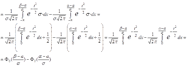 Вероятность попадания нормального распределения СВ Х в интервал (α, β) вычисляется по формуле: сведем к вычислению через нормированную функцию Лапласа, |замена| и