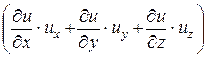 В общем случае неустановившегося движения проекции скорости ux, uy, uz являются функциями переменных Эйлера (координат x, y, z и времени t). Поэтому полный дифференциал скорости равен сумме четырёх частных дифференциалов: