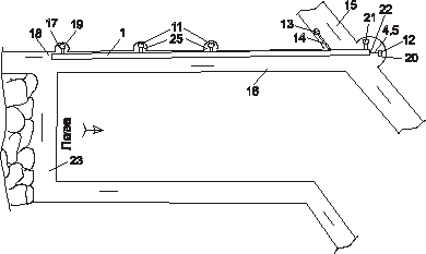 ПГСК включает: эвакуатор 1 круглой формы, выполненный из жаростойкого материала, ролики 2 з опорами 3, тяговые канаты: верхний 4 и нижний 5, эластичные захваты 6 на тяговых канатах, трубопровод 7 с креплениями 8, кабель электроснабжения 9, кабель связи 10. Кроме того, комплекс включает соединённые с эвакуатором 1 шлюзы следующих видов: начальный шлюз 21, промежуточные шлюзы 11 и конечный шлюз 19, а также включает лебёдку 12, соединённую с тяговыми канатами 4 и 5, вентилятор 13, воздухопровод 14. В шлюзе 19 размещено пусковое устройство для дистанционного включения в работу лебёдки 12. Диаметр трубы эвакуатора 1 устанавливают с расчётом обеспечения возможности передвижения по ней не менее двух горноспасателей одновременно в одном или разных направлениях в полном снаряжении в лежащем положении на роликах 2. Эвакуатор 1 размещают в подземной горной выработке 16 по одному из возможных вариантов (см. рис.4) в зависимости от особенностей горнотехнических условий, в частности - с учётом назначения, параметров, сроков службы выработки, вида транспорта, особенностей горных пород, уровня опасности по газу, пыли, обрушений, внезапным выбросам. По варианту 4 а эвакуатор 1 размещают на поверхности почвы горной выработки 16, по варианту 4 б - частично углублённому в почве выработки. Размещение эвакуатора 1 по варианту 4 в обеспечивает наиболее надёжную защиту её от действия взрывной волны, сверхвысоких температур, обрушений при взрывах газа и пожарах. Кроме того, в этом случае эвакуатор 1 не уменьшает свободную площадь поперечного сечения горной выработки, что очень важно для размещения в выработке транспортных средств и другого горношахтного оборудования. Шлюзы 11, 19, 21 размещают (см. рис.3) соответственно в нишах 25, 17 20 выработки 16, для чего выполняют местные расширения выработки. Промежутки между шлюзами устанавливают с учётом схемы горных выработок и рабочих зон, вида работ, количества работников, уровня опасности пожаров, взрывов, обрушений, внезапных выбросов. Чем выше уровень опасности, тем чаще устанавливают шлюзы на эвакуаторе 1. Шлюз 21 размещают в нише 20 магистральной выработки 15. Все шлюзы ПГКС оборудуют системой клапанов с возможностью открытия их из внутри эвакуатора 1 во внешнем направлении. Эвакуатор 1 имеет (см. рис.3) два торца: торец 18 размещён в рабочей зоне выработки 16, а торец 22 - в магистральной выработке 15, по которой проходит свежий воздух. Торец 22 эвакуатора 1 имеет отверстия для прохождения тяговых канатов 4 и 5, соединённых с лебёдкой 12, размещённой в нише 20 выроботки 15. Эвакуатор 1 в торцевой части 18 оборудован (см. рис.2) опорным роликом 26 увеличенной мощности для удержания натяжения канатов 4 и 5. Длина эвакуатора изменяется соответсвенно перемещиния рабочих зон, для чего монтируют или демонтируют отдельные его секции. ПГСК работает следующим образом. Эвакуатор 1 защищает от повреждения рамещённое в ней оборудование: ролики 2 с опорами 3, тяговые канаты 4 и 5, трубопровод 7 с креплениями 8, кабель электроснабжения 9, кабель связи 10. Таким образом, обеспечивается возможность применения указанного оборудования при авариях. Вентилятор 13, установленный в выработке 15, постоянно нагнетает в эвакуатор 1 свежий воздух, в результате чего в ней поддерживается избыточное давление воздуха, что препятствует проникновению в эвакуатор 1 из выработки 16 взрывчаты