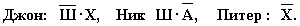— Вот увидишь, Шумахер не придет первым, — сказал Джон. Первым будет Хилл. — Да нет же, победителем будет, как всегда, Шумахер, — воскликнул Ник. — А об Алези и говорить нечего, ему не быть первым. Питер, к которому обратился Ник, возмутился: — Хиллу не видать первого места, а вот Алези пилотирует самую мощную машину. По завершении этапа гонок оказалось, что каждое из двух предположений двоих друзей подтвердилось, а оба предположения третьего из друзей оказались неверны. Кто выиграл этап гонки? Решение. Введем обозначения для логических высказываний: Ш — победит Шумахер; Х — победит Хилл; А — победит Алези. Реплика Ника "Алези пилотирует самую мощную машину" не содержит никакого утверждения о месте, которое займёт этот гонщик, поэтому в дальнейших рассуждениях не учитывается. Зафиксируем высказывания каждого из друзей: