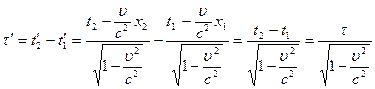 Отже В системі координат, відносно якої тіло рухається, тривалість події більша, ніж в системі координат, відносно якої тіло нерухоме.