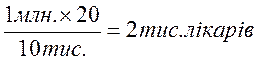 У сільському господарстві рівень продуктивності праці вимірюється показником – виробітком одного працівника, зайнятого у сільському господарстві. Тому відношення необхідного обсягу виробництва продукції до показника виробітки дає нам показник необхідної чисельності робочої сили у сільському господарстві. Потреба в робочій силі у галузях сфери послуг (освіті, охороні здоров’я та інших) виходить з такої залежності: Чисельність робочої сили = Чисельність населення (контингенту обслуговування) × норму обслуговування населення (3.5) Дана норма є соціально-економічним нормативом і встановлюється, як правило, в розрахунку на 10 тис. населення. Приклад, якщо чисельність населення – 1 млн. осіб, а норма обслуговування – 20 лікарів на 10 тис. населення, то потреба у лікарях складе: