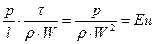 2). З другого доданку отримаємо число Ейлера, що характеризує відношення сил тиску в потоці до інерційних сил: