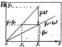 Визначення числа одиниць переносуДля визначення числа одиниць переносу як допоміжний метод може слугувати метод визначення ступенів зміни робочих концентрацій. Нехай залежність між рівноважними концентраціями речовини, що розподіляється, являє собою пряму Yp=ApX, а залежність між робочими концентраціями пряму Y=AX. Розглянемо випадок коли робоча концентрація на "вході" в елемент Y1, а на "виході" з елементу апарата Y2 - рівна рівноважній концентрації на "вході" в нього Yp1, тобто при умові Y2=Yp1 (рис. 8.7) така робочих концентрацій називається ступенем зміни концентрацій. Згідно (8.5.15) маємо: