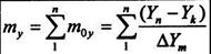 Для використання рівняння (8.7.3), попередньо графічно визначається число сходинок зміни концентрації, а також величини Уп,Yk,, ΔYn , ΔYk і ΔYm для кожної сходинки з подальшим визначенням загального числа одиниць переносу. При Δ Yr/ΔYk<2 (при Δ Yn<ΔYk) величина AYm може бути розрахована як середня арифметична.
