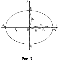 Гіперболою називається множина всіх точок площини, для яких модуль різниці відстаней кожної з них до двох фіксованих точок площини, які називаються фокусами, є величина стала (Рис. 4). Канонічне рівняння гіперболи має вигляд