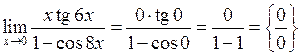 У даному випадку для розкриття невизначеності слід використати першу “визначну” границю, або еквівалентність функцій: