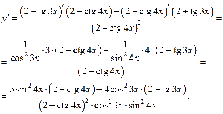 Розв’язання. Застосуємо правило диференціювання дробу та формули 10 і 11 з таблиці похідних. Одержимо