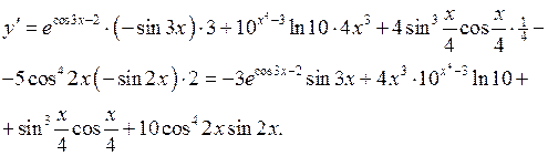 Приклад 17. Знайти похідну Розв’язання. З формули (22) випливає, що для знаходження похідної четвертого порядку необхідно знайти похідну третього порядку, похідна 3-го порядку знаходиться як похідна від похідної 2-го порядку, а похідна 2-го порядку знаходиться як похідна від похідної першого порядку. Будемо знаходити послідовно похідні 1-го, 2-го, 3-го та 4-го порядків. Маємо: