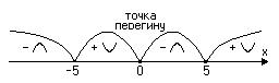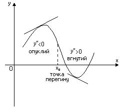 в інтервалі , якщо він знаходиться нижче довільної його дотичної на цьому інтервалі.Точкою перегину неперервної функції називається та точка, яка відділяє вгнутість від опуклості її графіка (Рис. 7). Якщо друга похідна функції Необхідною умовою існування точки перегину графіка функції є рівність нулю її другої похідної: Точка Достатньою умовою існування точки перегину графіка неперервної функції є зміна знаку другої похідної при переході через точку Асимптотою графіка функції Вертикальною асимптотою є пряма Для функції Похилу асимптоту шукають у вигляді
