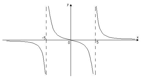 Розв’язання. 1) Знайдемо область визначення функції. Необхідно знайти ті точки, в яких знаменник дробу дорівнює нулю і виключити їх. Одержимо 2) Знайдемо асимптоти графіка функції. а) Вертикальні асимптоти будемо шукати в точках розриву функції. Одержимо