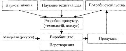 Рис. 1. Науково–технічний прогрес як процес перетворення, орієнтований на задоволення людських потреб.
