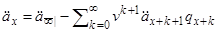 Тому чиста страхова премія може розглядатися як поточне значення нескінченного аннуітету, зменшеного кожного року з врахуванням смертності.