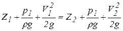 де α1,α2 - коефіцієнти нерівномірності швидкості рідини в перетинах 1 і 2; Δ h - втрати напору між перетинами 1 і 2.