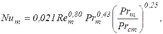 де m - індекс m відноситься до середньої температури внутрішньої поверхні стінки;