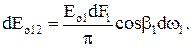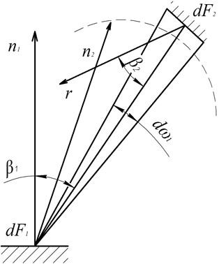 Ео – ефективне випромінювання абсолютно чорної поверхні у всіх напрямках у межах півсфери; Еon - ефективне випромінювання по нормалі до першої поверхні. Тоді маємо ефективне випромінювання від поверхні dF1 до поверхні dF2