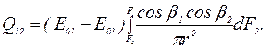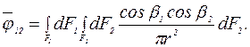 Кількість теплоти, що віддається площадкою dF1 усьому другому тілу F2 знаходиться інтегруванням