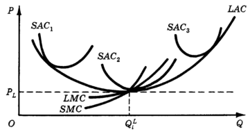 то, во-первых, фирмы достигли оптимальных размеров своих производственных мощностей (LMCi = LACi) и оптимального объема выпуска LMCi = РL); во-вторых, отрасль не будет привлекать капитал из других отраслей, так как при сложившейся цене в ней уже не образуется сверхприбыль (РL = LACi). Однако при достижении долговременного отраслевого равновесия указанное равенство можно расширить: