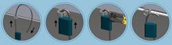 Рис.1. ЗПУ «Блок-Гарант» При пломбировании вагонов и контейнеров ЗПУ "Блок-Гарант" свободный конец троса пропускается через отверстие запорного устройства вагона или контейнера с последующим продеванием через корпус ЗПУ и затягиванием до плотного соприкосновения корпуса с элементами запорного устройства вагона или контейнера, т.е. образования петли минимального размера. После установки ЗПУ производится проверка надежности замыкания попыткой вручную переместить корпус ЗПУ (зажим) по тросу в обратном направлении. При исправном ЗПУ обратный ход корпуса ЗПУ относительно троса исключается. ЗПУ навешивается так, чтобы просматривались контрольные знаки.