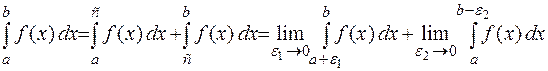 Если пределы в правых частях формул (4) — (6) существуют и конечны, то соответствующие несобственные интегралы от разрывной функции в точках