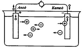 Рис. 10.14. Схема процесса электролиза При электроосаждении металлов, стоящих в ряду напряжений выше водорода, одновременно с ними происходит выделение водорода, который в большинстве случаев ухудшает качество покрытий, придавая им хрупкость, и увеличивает продолжительность электролиза, так как часть электрической энергии расходуется на его выделение. Отношение фактической массы осажденного металла к теоретической называется выходом по току и характеризует коэффициент полезного действия ванны: