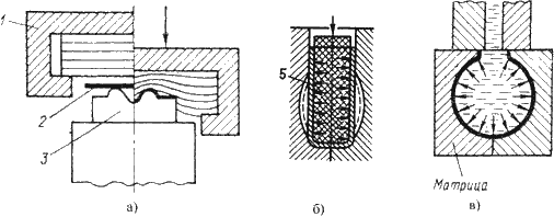 Рис. 16.2. Схемы листовой штамповки при помощи эластичной среды и жидкости