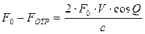 V – скорость кровотока; Q – угол излучения по отношению к скорости кровотока; Fотр – частота отраженной волны от частиц кровотока; F0 – излученная датчиком УЗ волна.