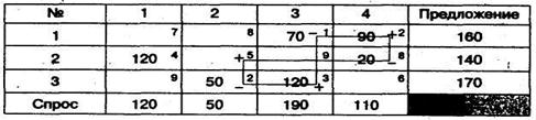 Заметим, что этот план совпадает с начальным планом, найденным по методу Фогеля. Оптимальные затраты: