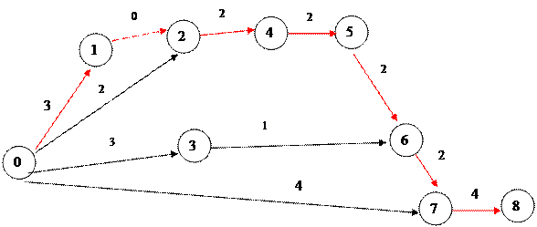 Расчет сетевого графика заключается в определении: - ранних сроков свершения событий, ранних сроков начала и окончания работ; - поздних сроков наступления событий, поздних сроков начала и окончания работ; - резервов времени работ и событий, критического пути.