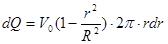 Через кольцо радиуса r пройдет за единицу времени объем жидкости, равный произведению площади кольца на скорость течения в точках, находящихся на расстоянии r от оси трубы. Тогда можем записать: