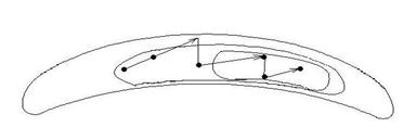 Рисунок 5.7 На рисунке 5.7 показана траектория поиска наименьшего значения целевой функции по методу наискорейшего спуска для функции, аналогичной изображенной на рисунках 5.5-5.6 это траектория ведет к цели не так быстро, как на рисунке 5.6 экономия машинного времени за счет более редкого вычисления градиента может быть весьма существенной.