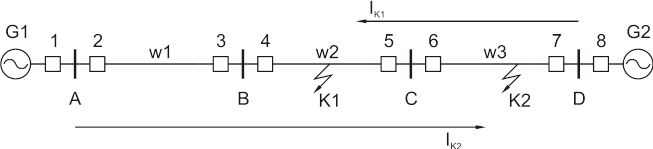 При КЗ в точках К1 и К2 через защиту 5 проходит ток IК1, IК2 в различных направлениях (рис. 7.1.2)