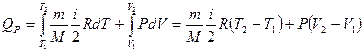 Рис.2.9 Графiчно в координатнiй площинi р, V (рис.2.9) робота газу в iзобаричному процесi дорiвнює площi прямокутника, обмеженого графiком стану газу (iзобарою), вiссю об’ємiв й ординатами, що вiдповiдають тиску р для початкового i кiнцевого об’смiв газу. Кiлькiсть теплоти. Щоб обчислити кiлькiсть теплоти, яку дiстає газ в iзобаричному процесi, проiнтегрусмо вираз: