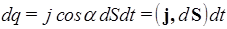 где a - угол между j и нормалью n к элементу поверхности dS, d S - вектор, имеющий величину dS и направление n. Заряд dQ, прошедший за время dt через все поперечное сечение проводника равен интегралу