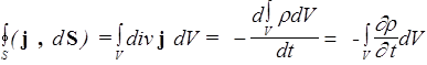 Это - уравнение непрерывности в дифференциальной форме. Если принять во внимание, что j = r v, где v - скорость направленного движения зарядов, этому уравнению можно придать следующую форму: