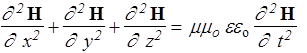 Это - волновое уравнение. Повторив описанные действия, легко получить такое же уравнение для вектора H