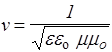 Каждое из волновых уравнений (155),(156) описывает волну, распространяющуюся с фазовой скоростью v, величина которой определяется коэффициентом при второй производной по времени