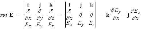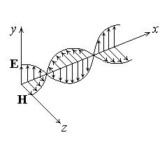 Решения (164) и (165) можно записать окончательно в векторном виде E º j Ev = E mcos (wt - kx), (167) H º k Hz = H mcos (wt - kx). (168)