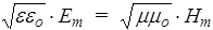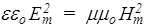 Таким образом, колебания Е и Н в электромагнитной волне происходят в одной фазе, а амплитуды Еm и Нm связаны соотношением