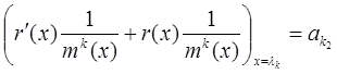 Для того, чтобы найти ak3 надо (**) продифференцировать дважды и т.д. Таким образом, коэффициент aki определяется однозначно. После нахождения всех коэффициентов вернемся к (*), умножим на m(x) и получим интерполяционный многочлен r(x), т.е.