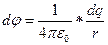 Это утверждение носит название принципа суперпозиции (наложения) электрических полей. Принцип суперпозиции позволяет вычислить напряженность и потенциал поля любой системы зарядов. Разбив протяженные заряды на достаточно малые доли dq, любую систему зарядов можно свести к совокупности точечных зарядов. Вклад каждого из таких зарядов в результирующее поле вычисляют по формулам: