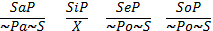 Виды высказываний I. По количеству: a. единичные – субъект которых указывает ровно на один предмет b. множественные – субъект которых указывает более чем на один предмет i. общие – субъект говорит обо всех элементах класса S ii. частные – субъект говорит о некоторых (возможно, всех) элементах класса S II. По качеству: a. Утвердительные – перед связкой не стоит частица «не» b. Отрицательные – перед связкой стоит частица «не» A ff i rmo - утверждаю N e g o – отрицаю Отсюда обозначения (гласные буквы приведенных выше слов) Общеутвердительные – все S являются P (a) На единичные букв не хватило. Ну и ладно, всё равно это частный случай общих. Язык силлогистики · Алфавит o S, P, M, S₁ - термины o a, e, i, o – логические константы o ~ - терминное отрицание («не») o ˥, &, V, o), (- технические символы · Определение правильно построенного терма (ППТ) o Всякий термин является ППТ o Если α – ППТ, то ~α – ППТ o Ничто иное не является ППТ · Определение ППФ o Если α и β – это ППТ, то α a β, α i β, α e β, α o β – ППФ o Если A – ППФ, то ˥A – ППФ o Если A и B – ППФ, то (A&B), (AVB), (A o Ничто иное не является ППФ Модельные схемы I. Высказывание «Все S являются P» истинно тогда и только тогда. Когда классы S и P находятся в одном из следующих отношений: S+aP- II. Высказывание «Все S не являются P» истинно тогда и только тогда, когда классы S и P находятся в одном из следующих отношений: S+eP+ III. Высказывание “Некоторые S являются P» истинно тогда и только тогда, когда классы S и P находятся в одном из следующих отношений: S-iP- IV. Высказывание «Некоторые S являются P»» истинно тогда и только тогда, когда классы S и P находятся в одном из следующих отношений: S-oP+ V. Высказывание «a является P»» истинно тогда и только тогда, когда классы S и P находятся в одном из следующих отношений: a+P- VI. Высказывание «a не является P»» истинно тогда и только тогда, когда классы S и P находятся в одном из следующих отношений: a+P+ Термин считается распределенным если и только если на всех модельных схемах, которые являются условием истинности того высказывания, в которое он входит, он полностью заштрихован или полностью не заштрихован, в противном случае термин считается нераспределенным. Единичные высказывания являются вырожденным случаем общих. Формула A является законом силлогистики если и только если она истинна на всех модельных схемах. Из множества формул Г логически следует формула B если и только если не найдется такой модельный схемы, на которой все формулы из Г – истинны, а формулы B ложны. Простой категорический силлогизм (ПКС) – умозаключение, в котором на основании некоторого отношения между терминами P и M, а так же терминами S и M делают вывод о наличии определенного отношения между S и P. Состав ПКС S – это субъект заключения, меньший термин, посылка, в которой он находится. Называется меньшей. P – это предикат заключения, больший термин. Посылка, в которой он находится, называется большей. M – это средний термин, встречается в обеих посылках, но никогда в заключениях. Модус – разновидность силлогизма, которая определяется видами высказываний, вошедших в этот силлогизм. Силлогизм является верным если и только если он удовлетворяет следующим условиям: I. Правило посылок: 1. Хотя бы одна посылка должна быть утвердительной. 2. Если обе утвердительные, то и заключение должно быть утвердительным. 3. Если одна из посылок отрицательная, то и заключение – отр
