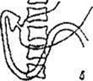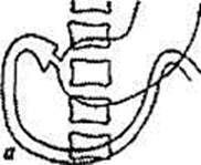 Рис. 13. Схематическое изображение статической подвижности поджелудочной железы. Положение: а - лежа; б - стоя.
